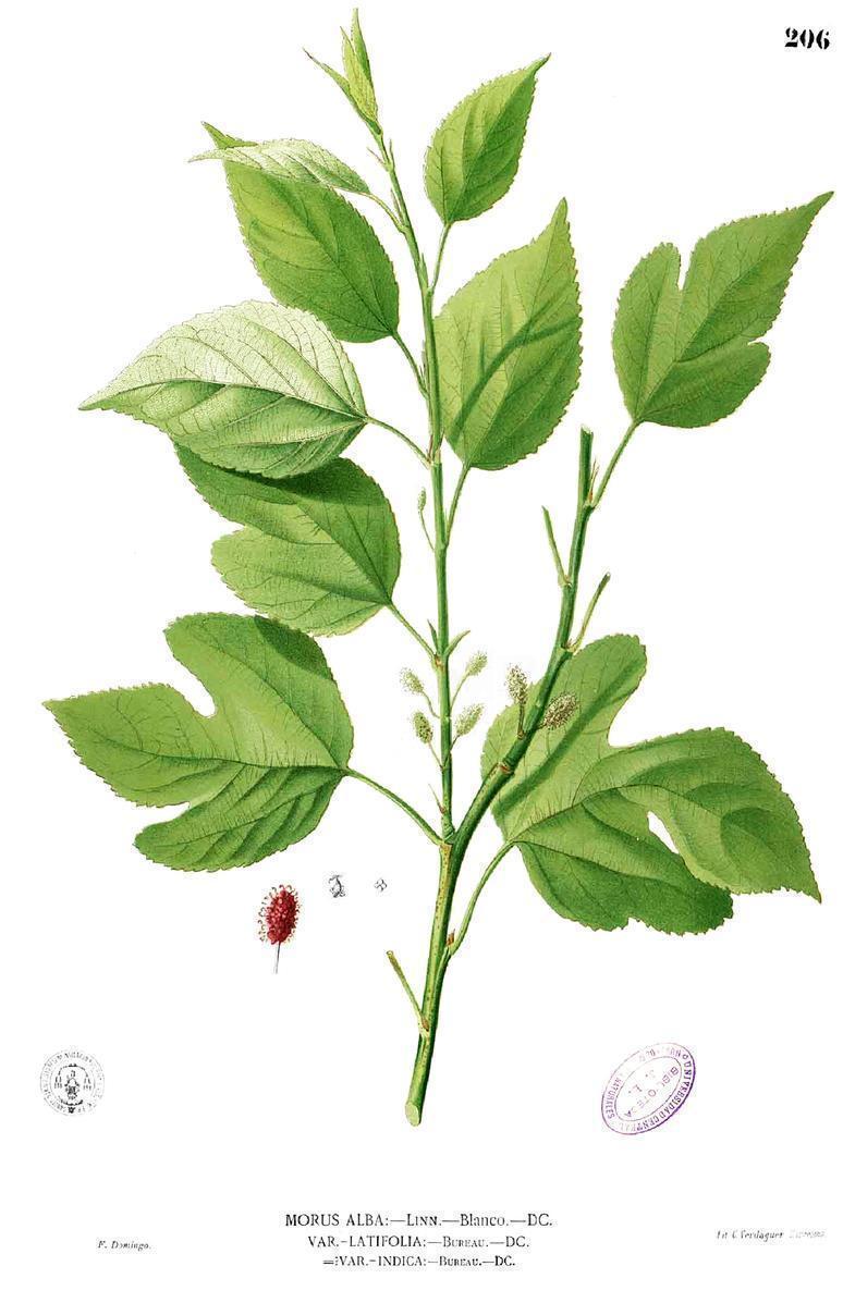 El nombre genérico Morus, propuesto por Linneo, fue tomado directamente del latín morum, que procede del griego morón, y alude a la mora negra de la zarza. En los últimos años su uso como árbol urbano se ha popularizado, sobre todo porque al dar poco fruto (hay además variedades estériles), mancha menos el suelo de calles y paseos.Procedencia